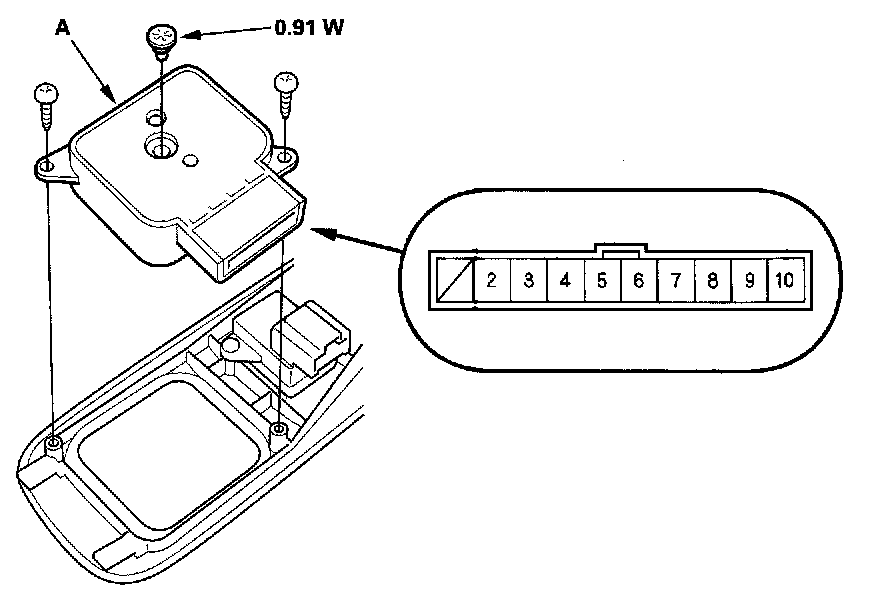 2. Disconnect the 10P connector from the memory switch (A).