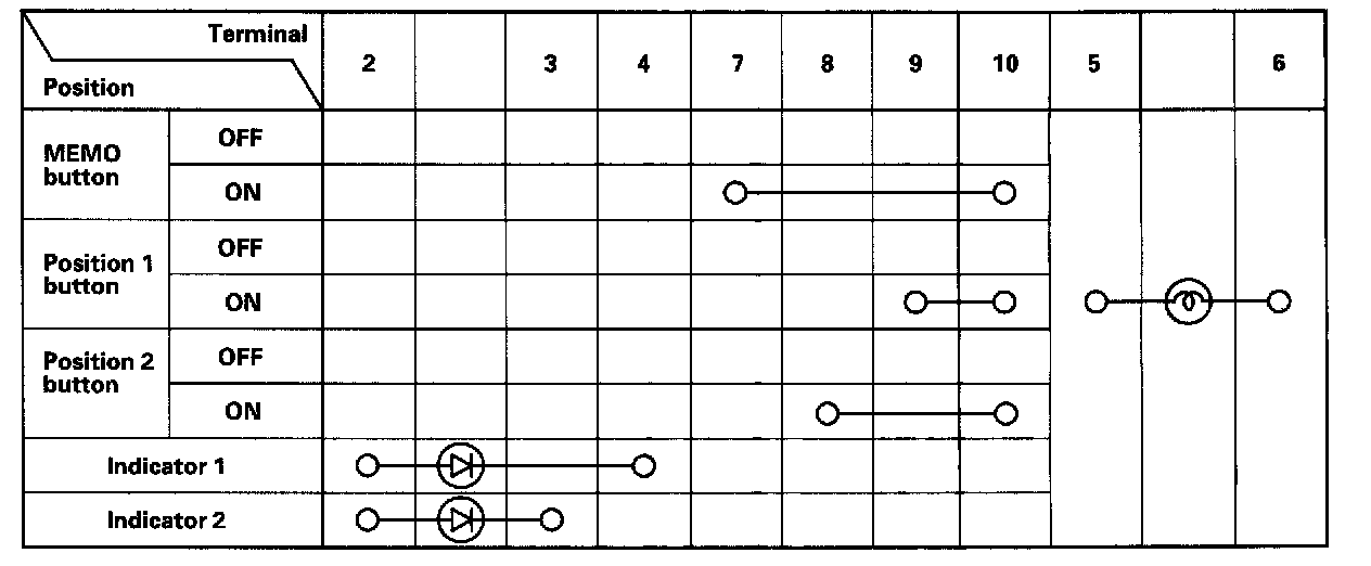 3. Check for continuity between the terminals in each switch position according to the table.
