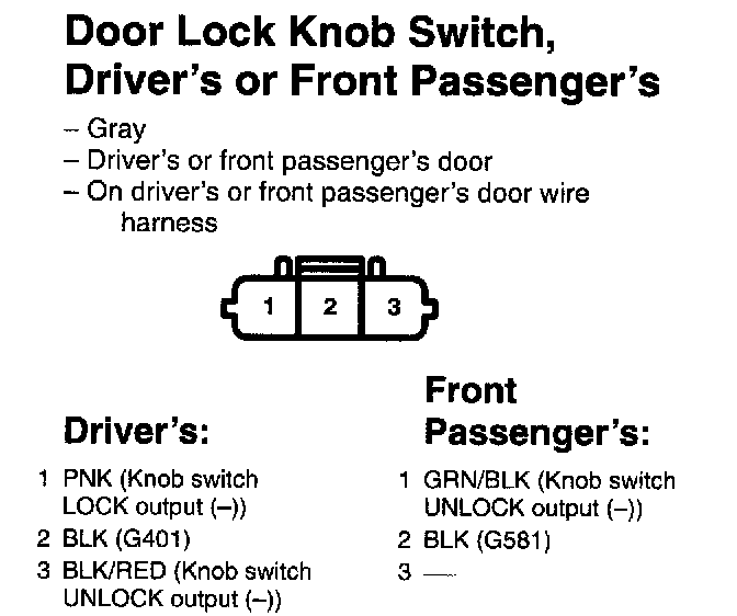 Door Lock Knob Switch, Driver's or Front Passenger's: