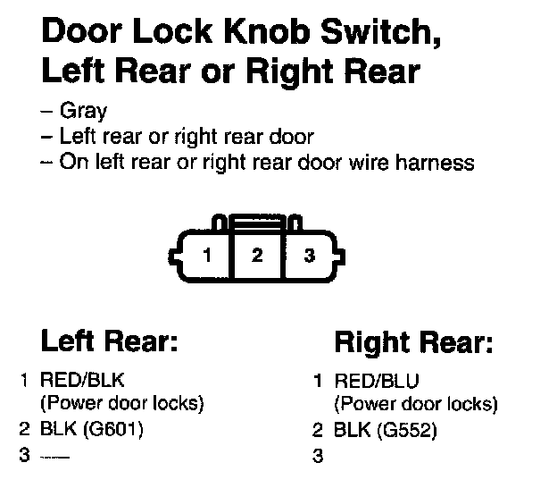 Door Lock Knob Switch, Left Rear or Right Rear: