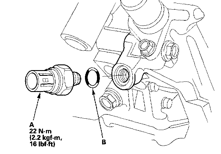 2. Install the VTEC oil pressure switch with a new O-ring (B).