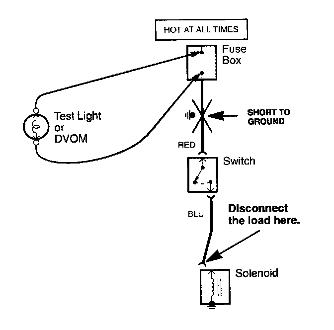 4. Where the test light goes off, or the DVOM voltage drops to zero, there is a short to ground in the wiring near that point.