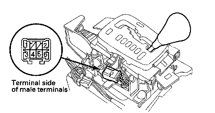 4. Shift the shift lever out of the 1 position, and check for continuity between the terminals in step 3. There should be no continuity.