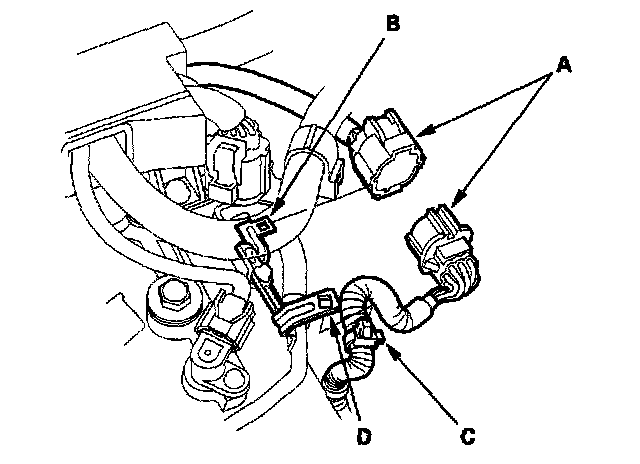 10. Connect the transmission range switch connector (A), then install it on the connector bracket (B).