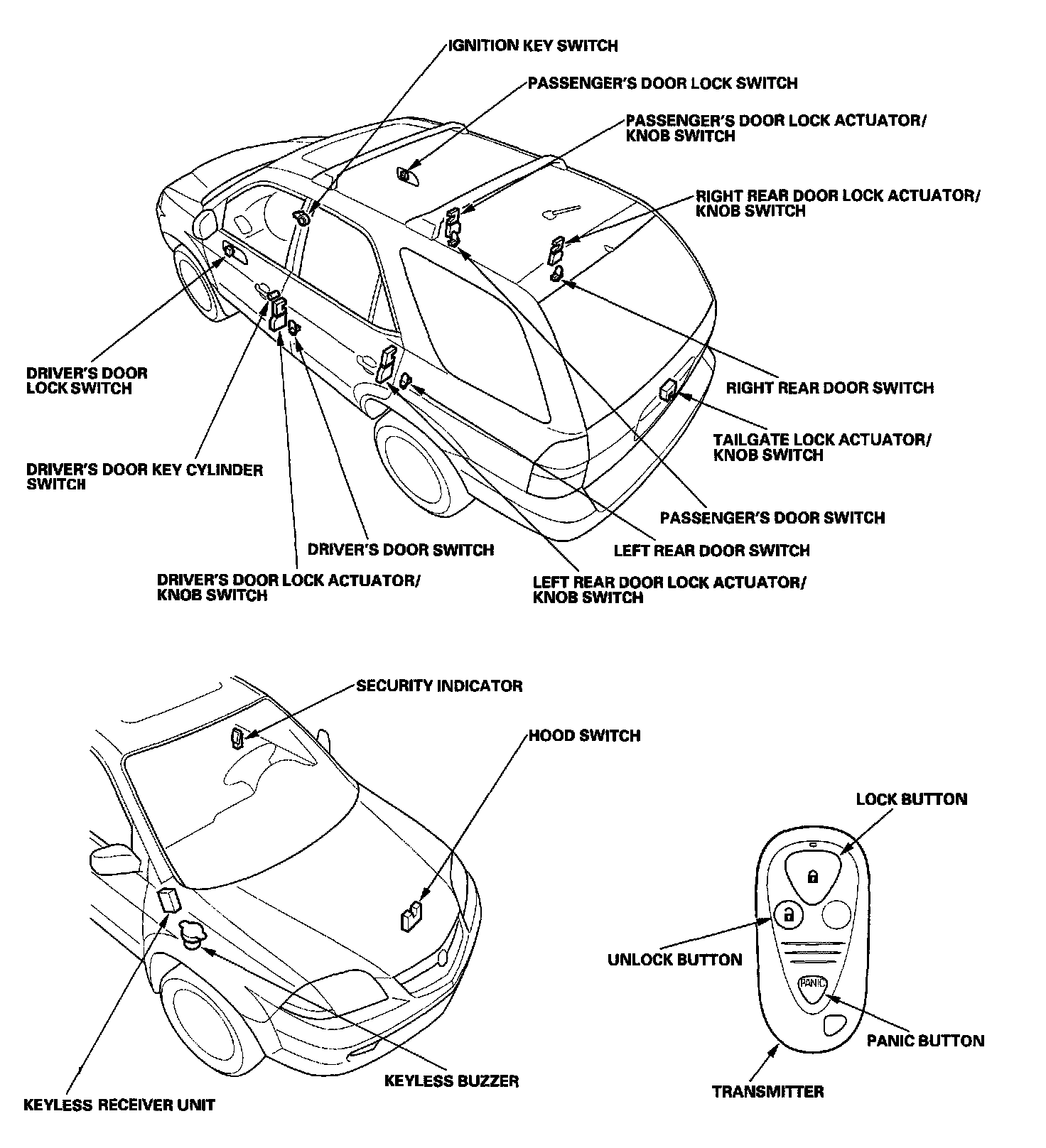 Keyless Entry/Security Alarm System Component Location Index:
