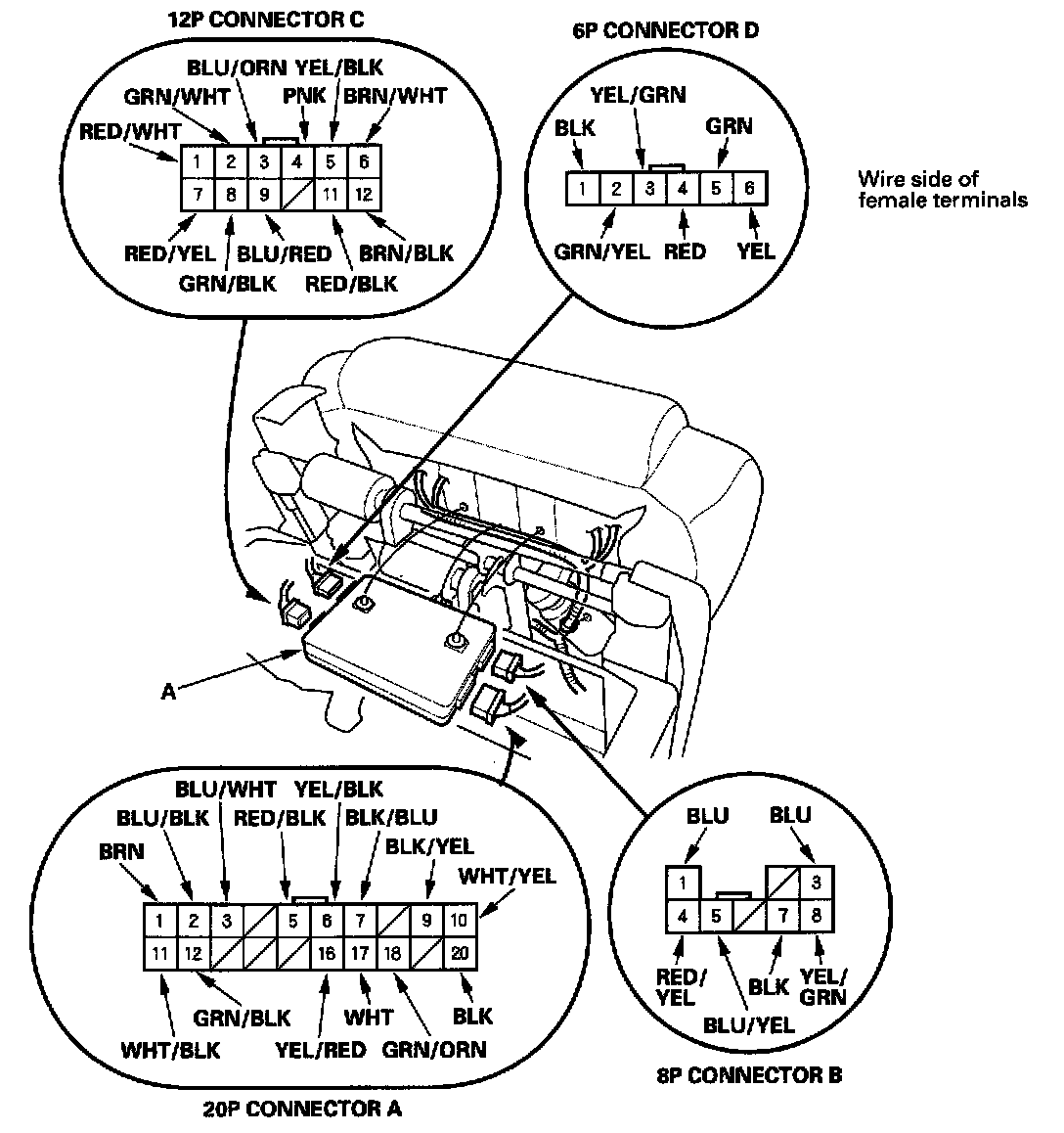 NOTE: All connector views are from wire side of female terminals.