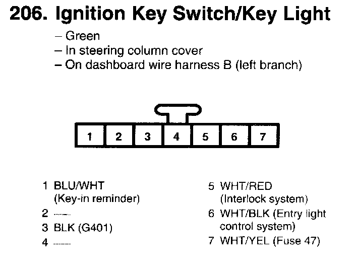 206. Ignition Key Switch/Key Light:
