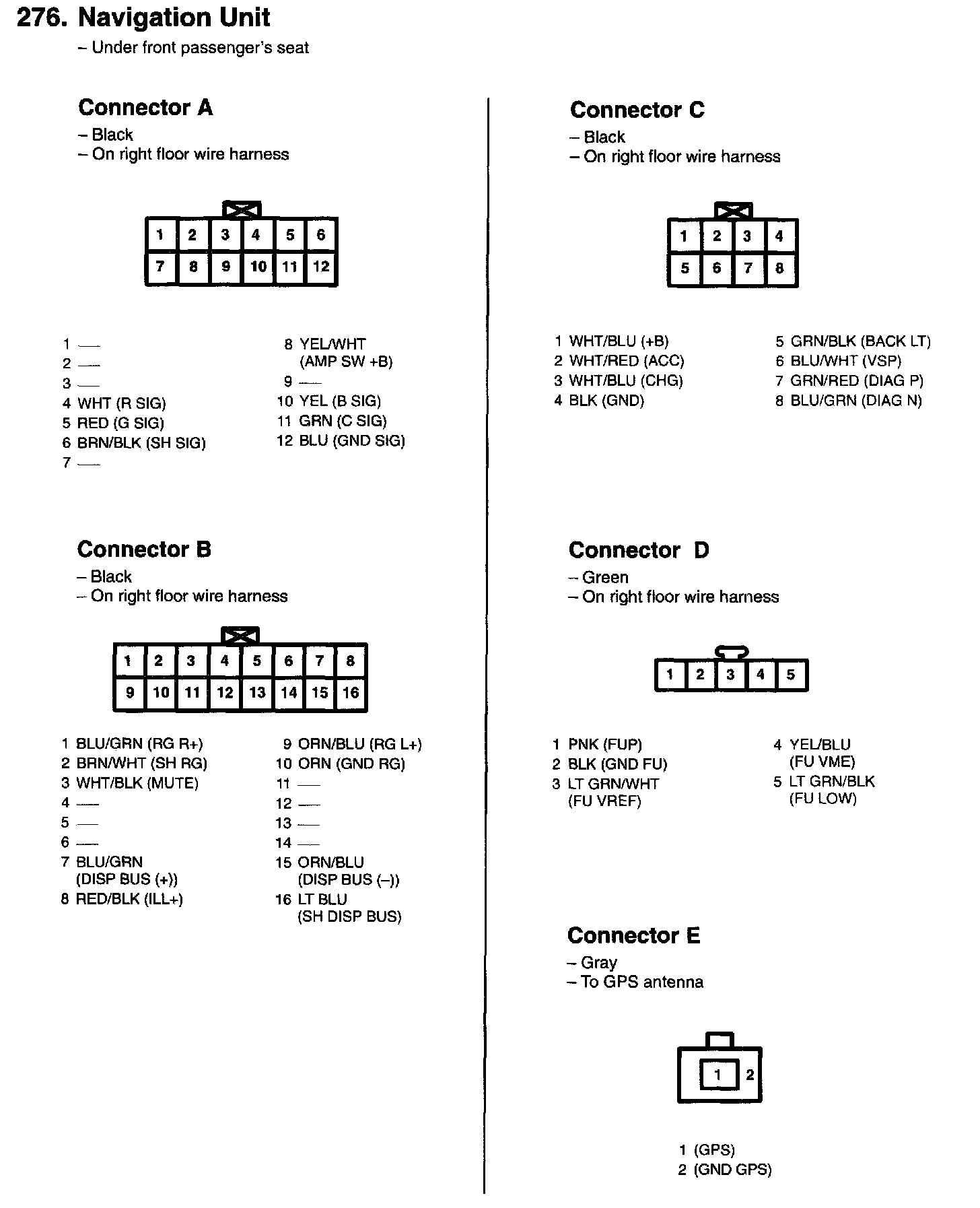 276. Navigation Unit (Connectors A - E):