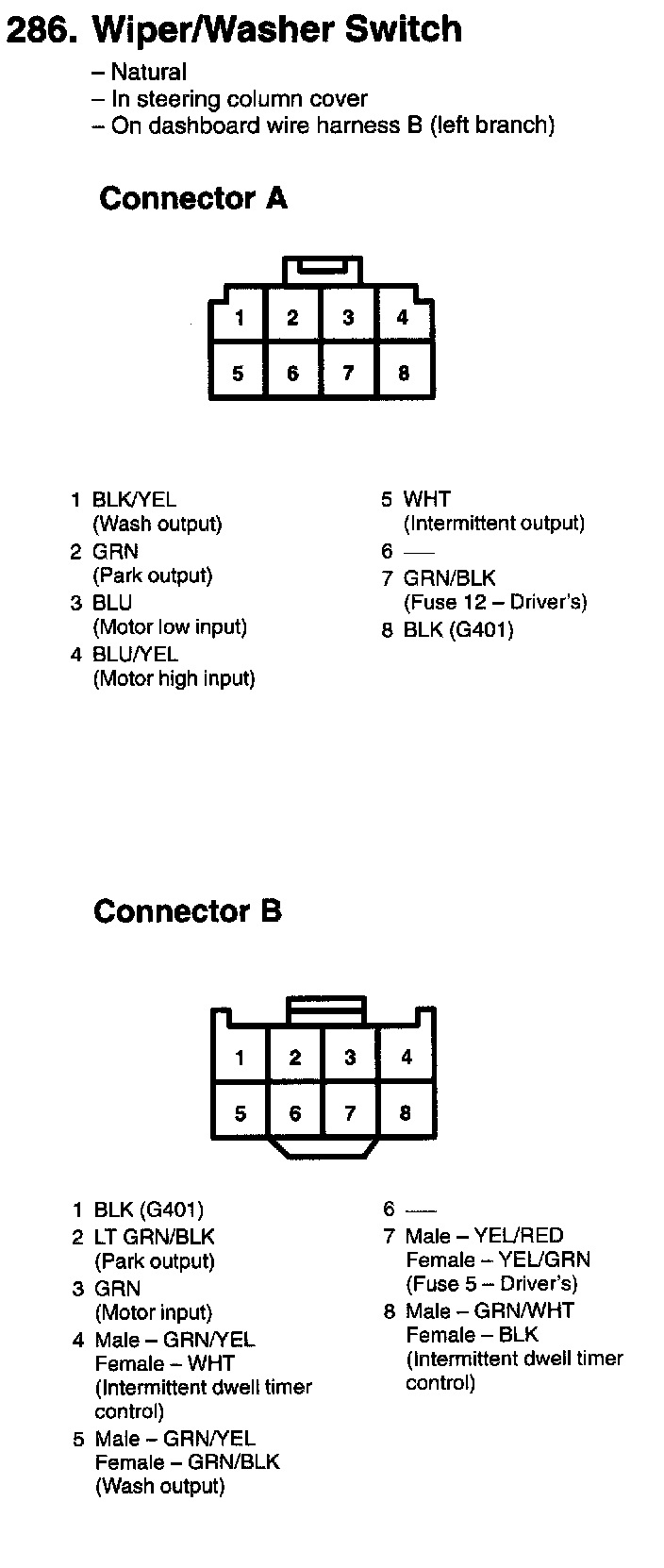 286. Wiper/Washer Switch: