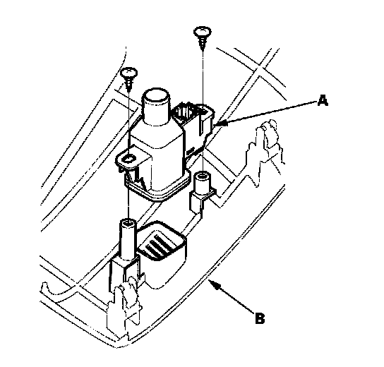 2. Remove the self-tapping screws and the in-car temperature sensor (A) from the driver's dashboard lower cover (B).