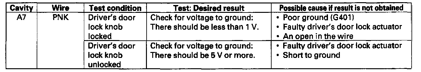 8. Reconnect the connector to the door multiplex control unit, and make these input tests.