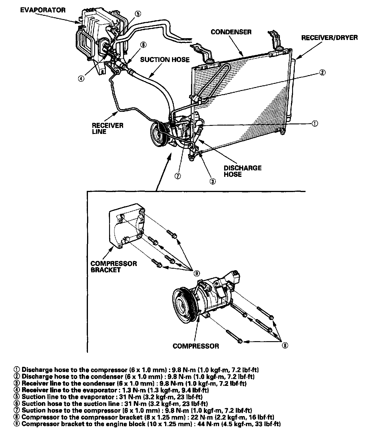 - Do not spill the refrigerant oil on the vehicle; it may damage the paint; if it gets on the paint, wash it off immediately.