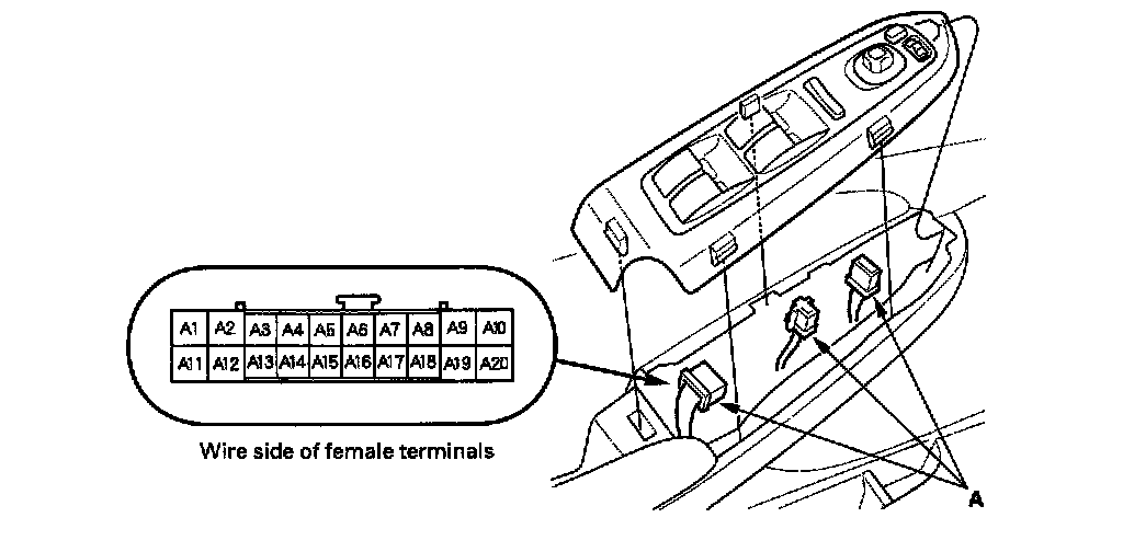 2. Disconnect the connectors (A).