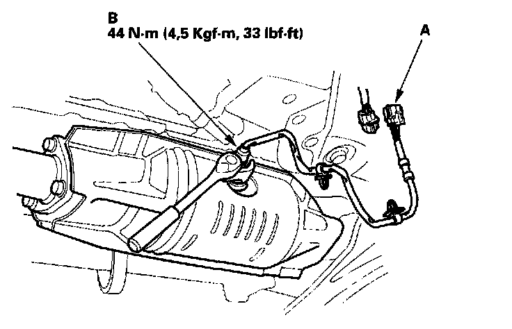 1. Disconnect the secondary HO2S 4P connector (A) then remove the secondary HO2S (B).