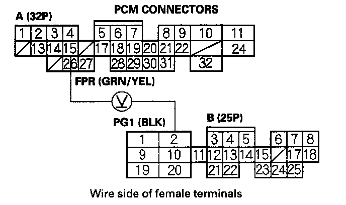 13. Reconnect PCM connector A (32P) and the PGM-FI main relay 7P connector.