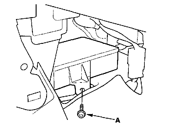 6. Pull down the carpet, then remove the Torx bolt (A) from the SRS unit.