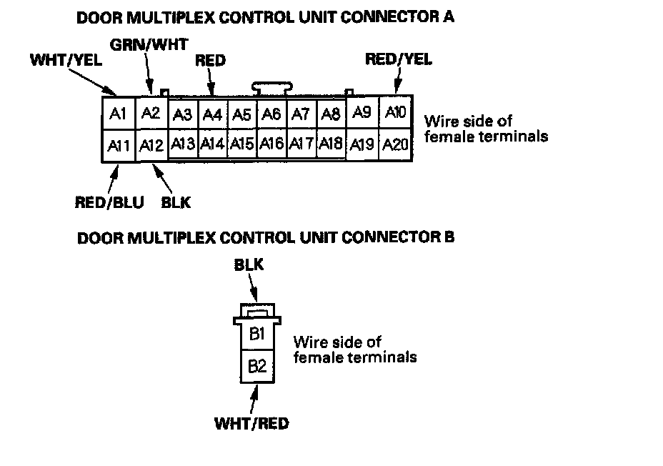 13. Disconnect the door multiplex control unit and make these input tests at the connectors.