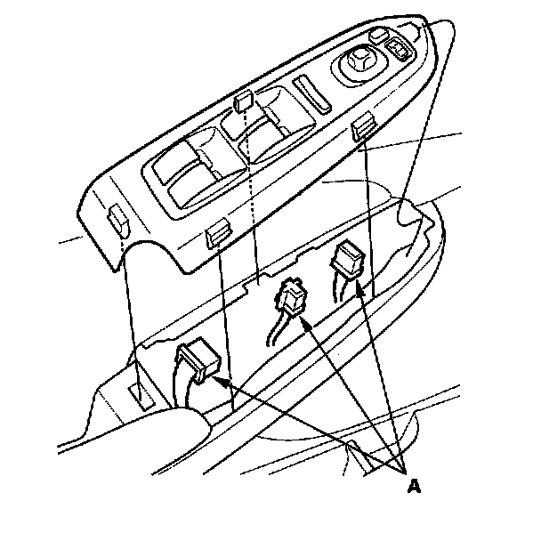 2. Disconnect the power mirror and power window switch connectors (A).