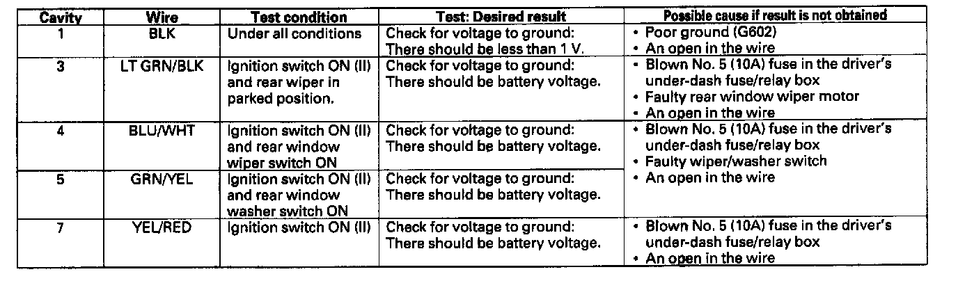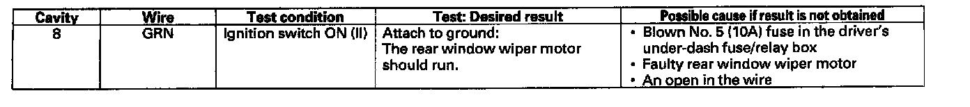 Rear Window Wiper Intermittent Control Unit Input Test