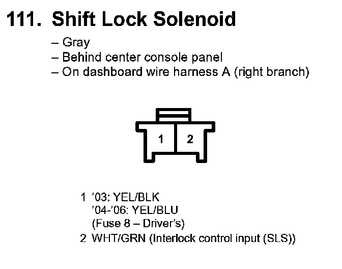 111. Shift Lock Solenold: