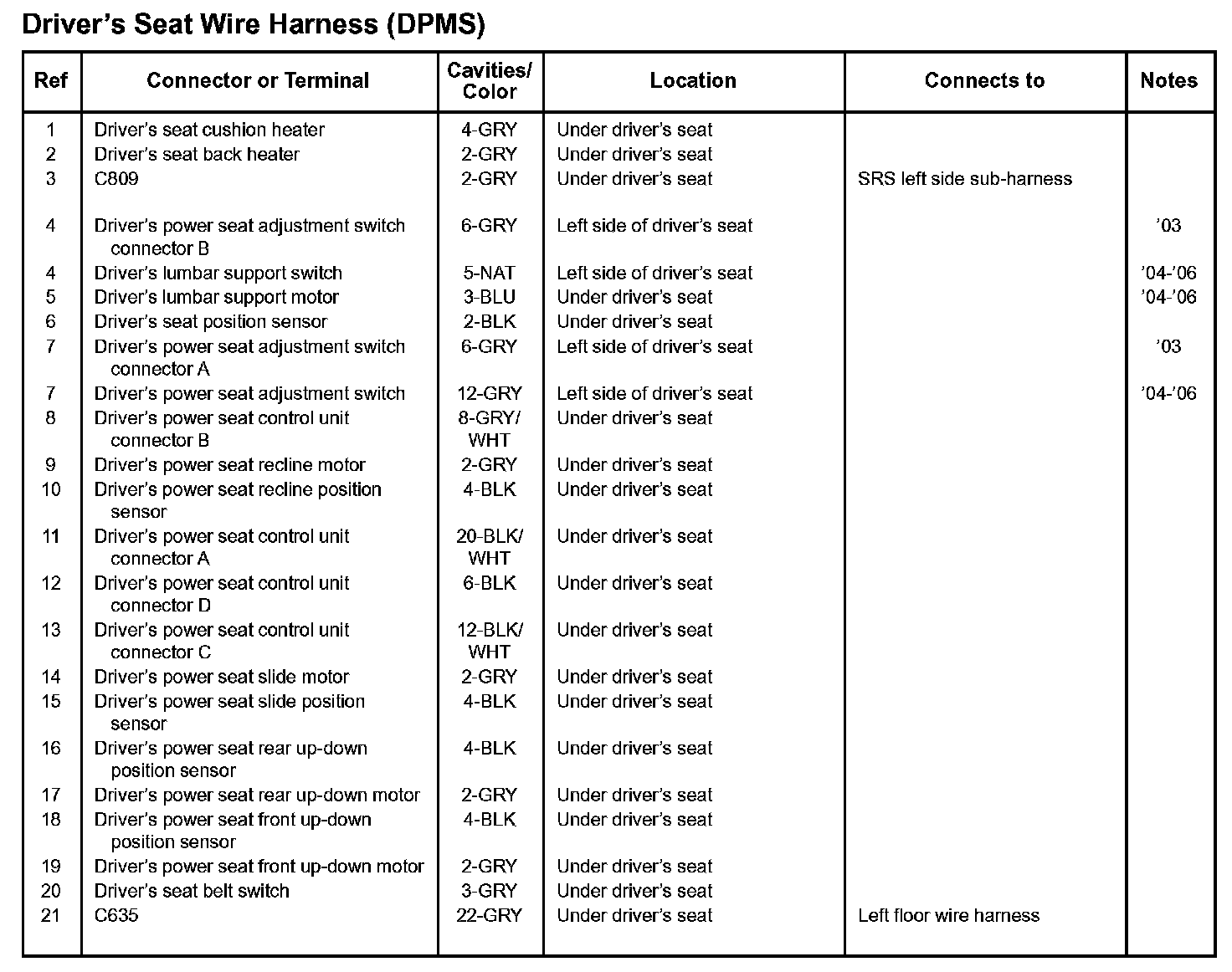 Driver's Seat Wire Harness (DPMS):