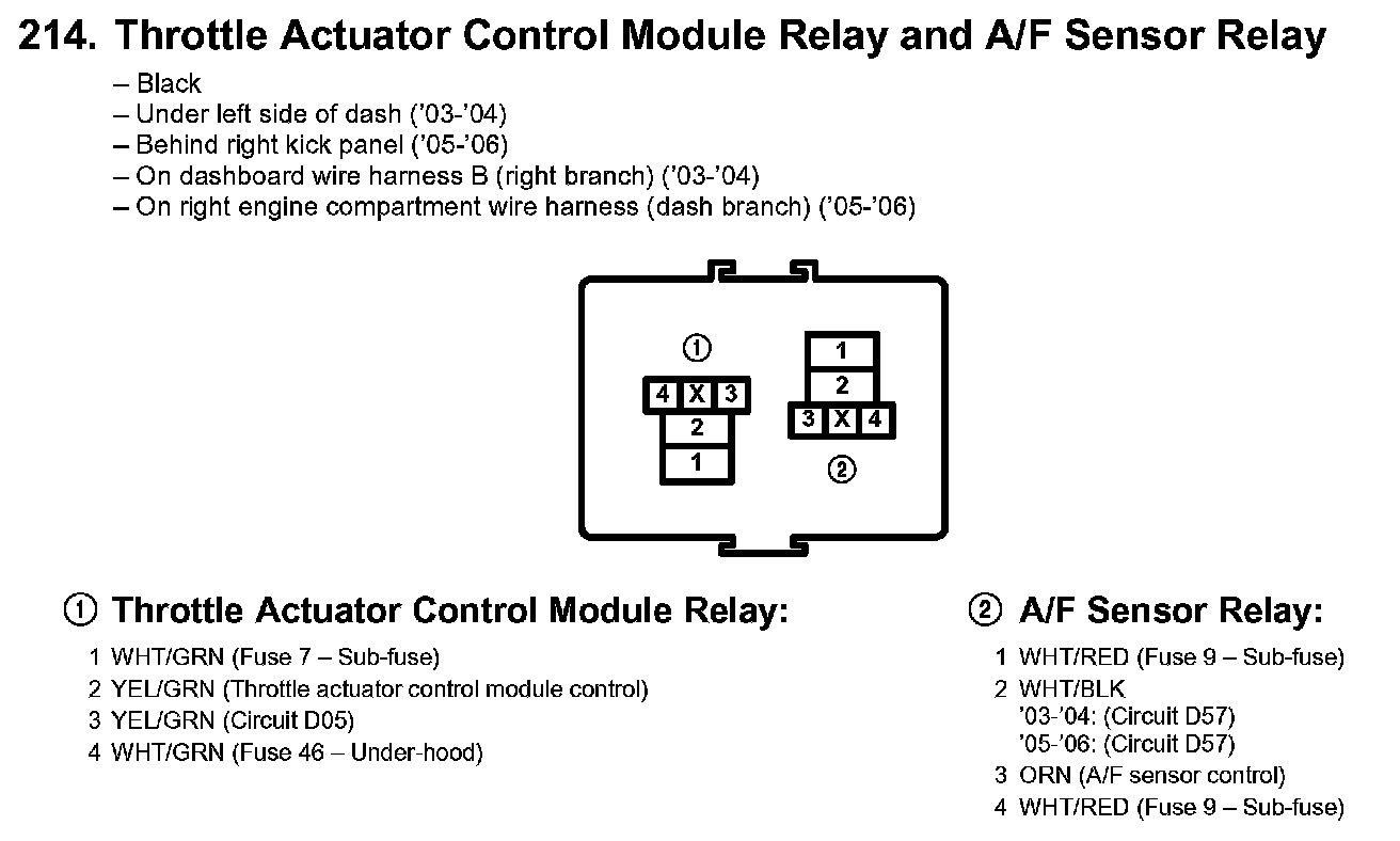 214. Throttle Actuator Control Module Relay And A/F Sensor Relay: