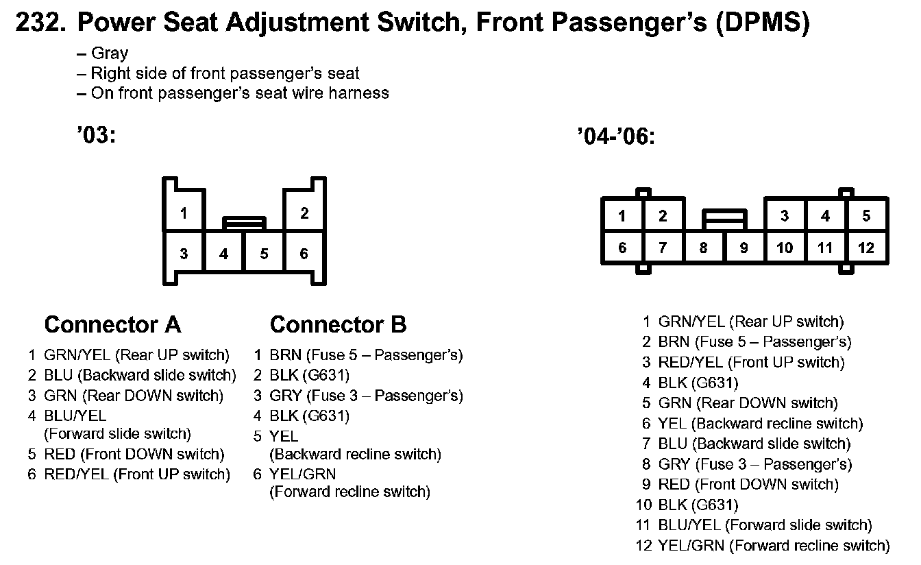 232. Power Seat Adjustment Switch, Front Passenger's (DPMS):