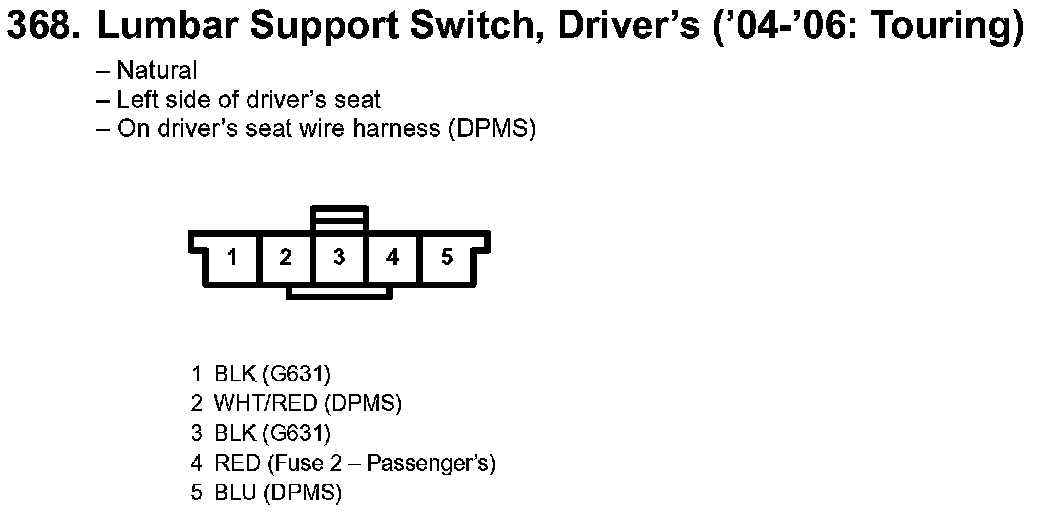 368. Lumbar Support Switch, Driver's ('04-'06: Touring):