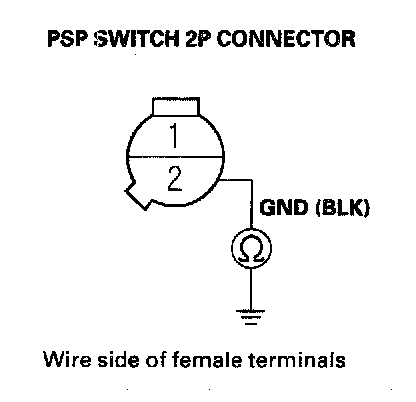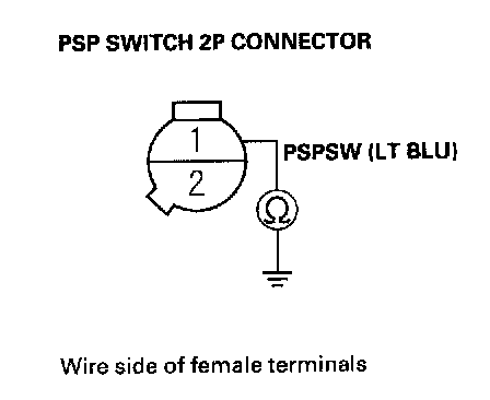 11. Check for continuity between PSP switch 2P connector terminal No.1 and body ground.