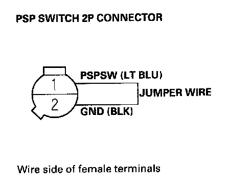 14. Connect the PSP switch 2P connector terminals No.1 and No.2 with a jumper wire, then start the engine.