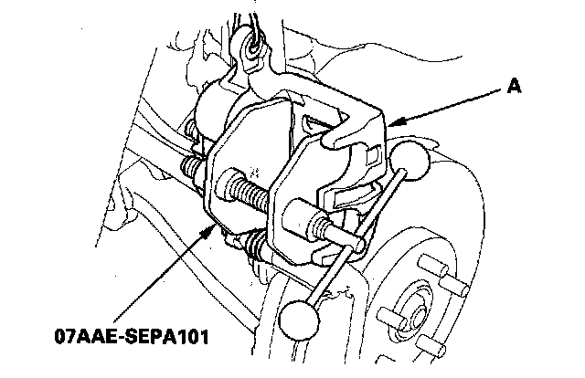 13. Mount the brake caliper piston compressor on the caliper (A).