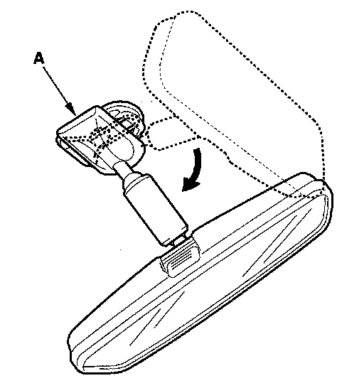 1. Turn the rearview mirror base (A) 90 °.