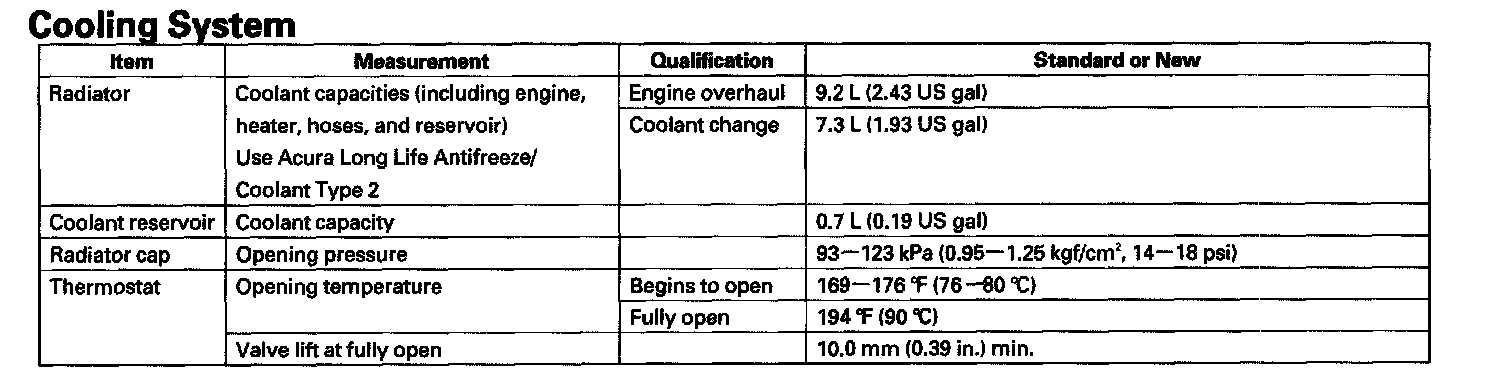 Cooling System: Specifications