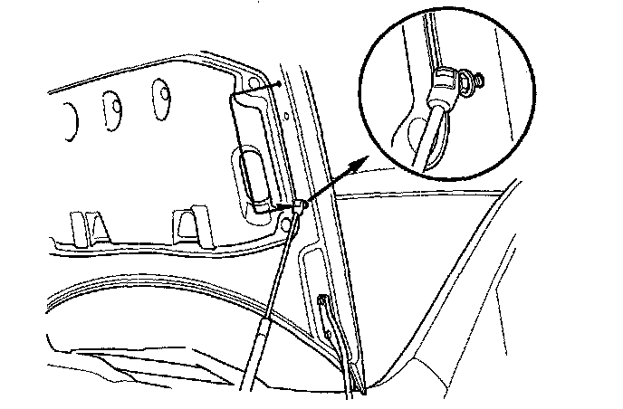 1. Remove the support struts from the engine hood. Move the engine hood to a vertical position, then reinstall the support strut as shown.