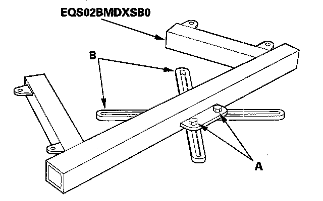 63. Loosen the four bolts (A) holding the adjustable arms (B) of the front subframe adapter (EQS02BMDXSBO) to its center plate.