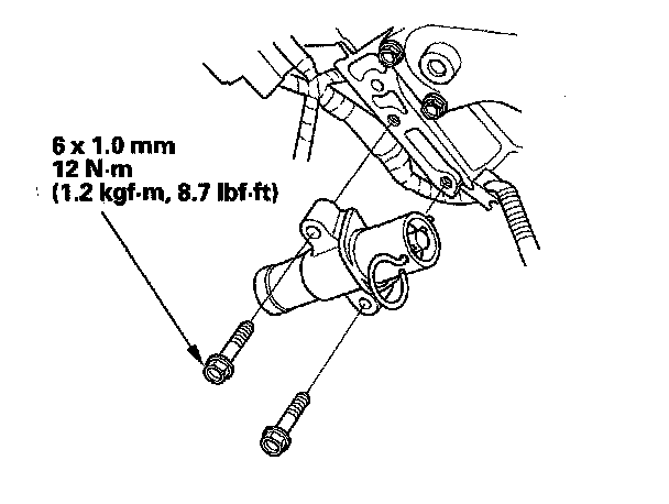 10. Thread the battery clamp bolt in as shown to hold the timing belt adjuster. Tighten it by hand; do not use a wrench.