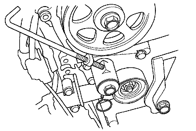 7. Align the holes on the rod and housing of the auto-tensioner.