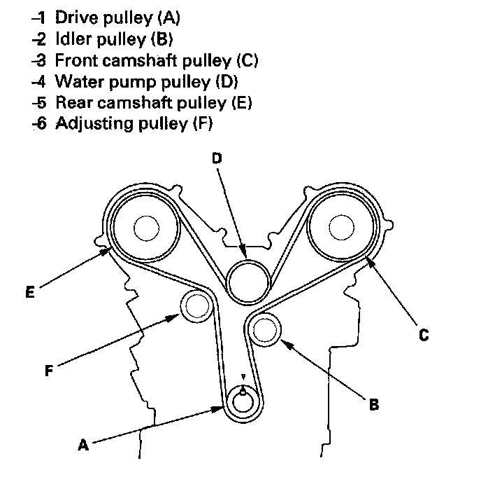 Timing Belt ReplacementNOTE: The following procedure is for the installation of a new timing belt. If you are installing a used belt, refer to the timing belt installation procedure.