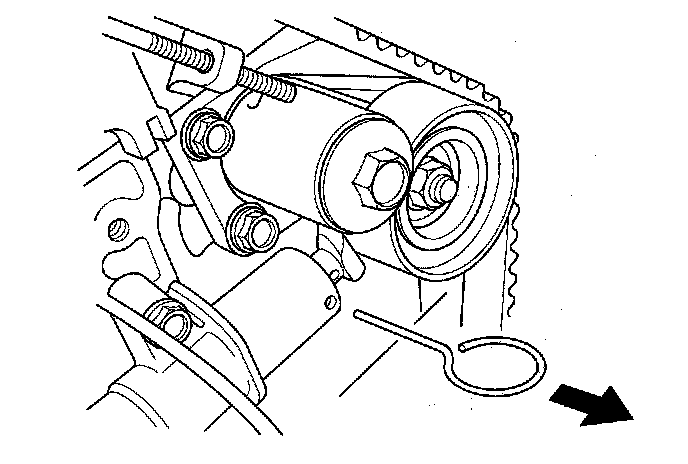 14. Remove the pin from the auto-tensioner.