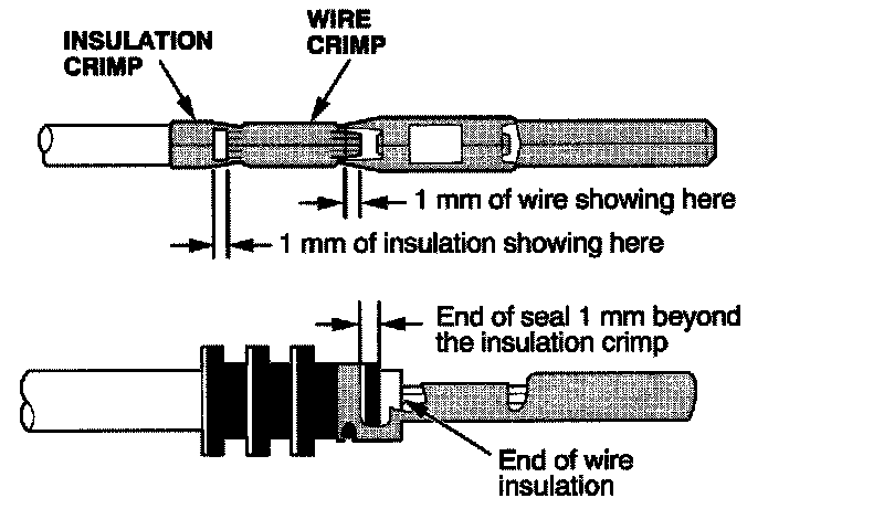 - If you do not have a wire seal, then use the next larger size crimp slot. Position the crimping tool over the insulation crimp section of the terminal, then squeeze the tool with both hands until the stops make contact.