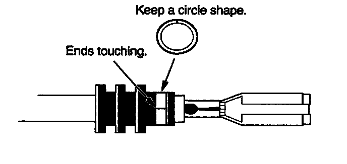 3. Strip the insulation off the end of the wire so the wire fits in the new terminal as shown. (If the wire has a wire seal, replace it with a new one from the kit.)
