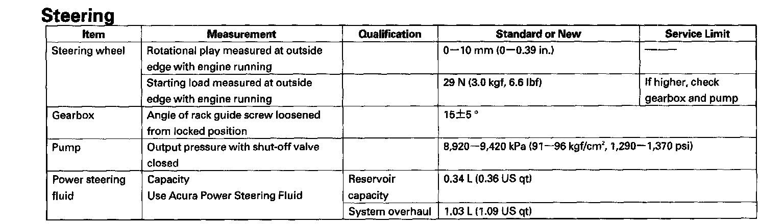Steering: Specifications