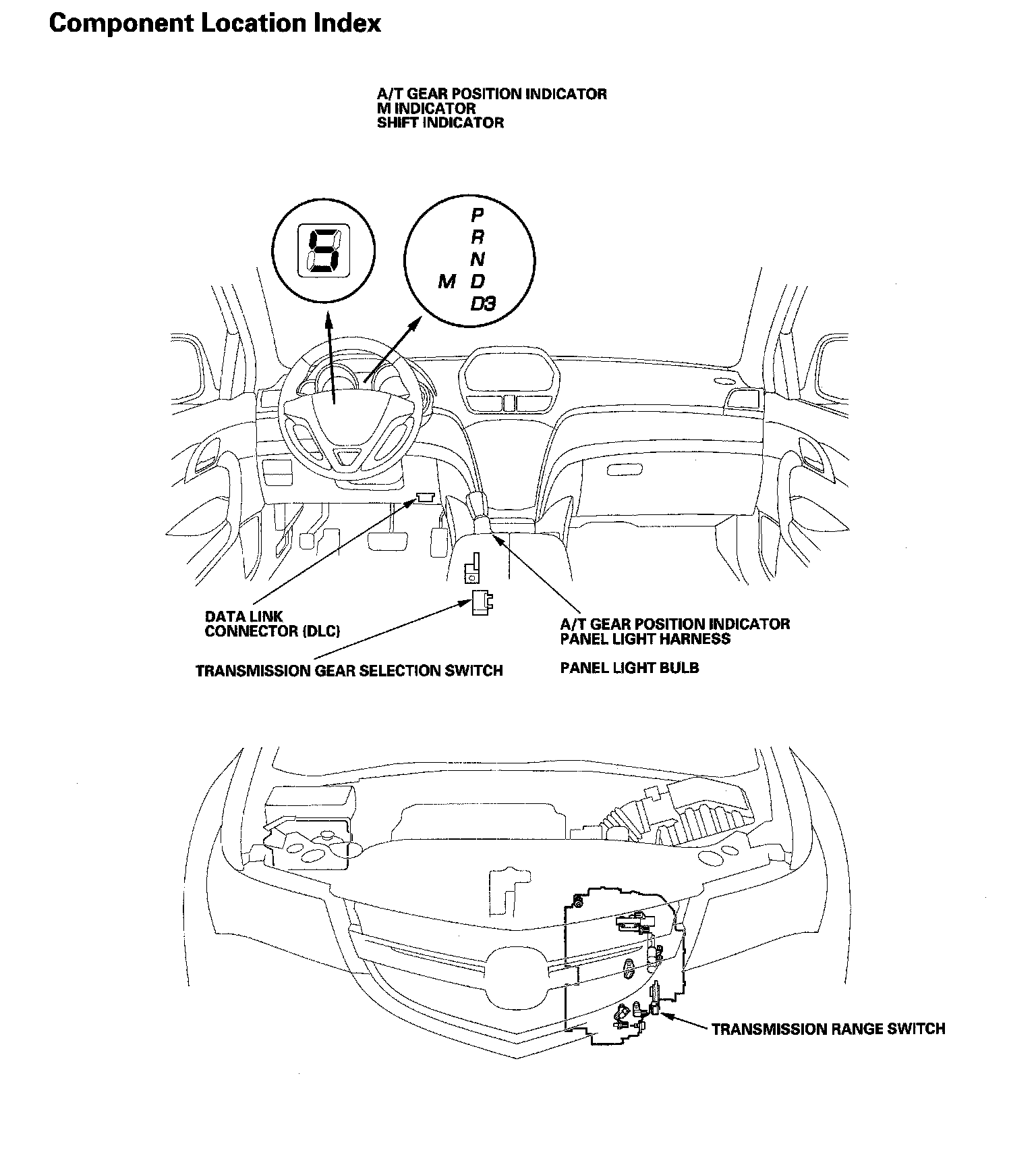 A/T Gear Position Indicator Component Location Index