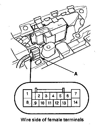 Rear Power Window Motor Test1. Remove the door panel, and disconnect the rear power window switch 14P connector (A).