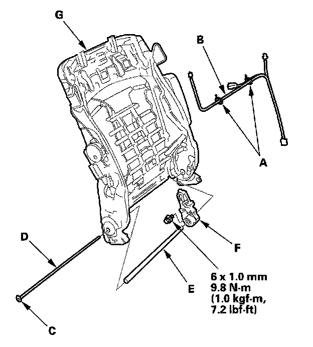 8. Install the new seat frame in the reverse order of removal, and note these items: