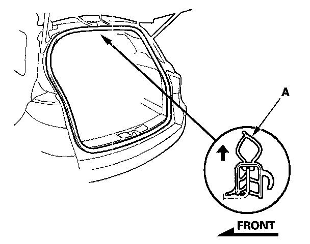 1. Remove the tailgate weatherstrip (A) by pulling out on it.