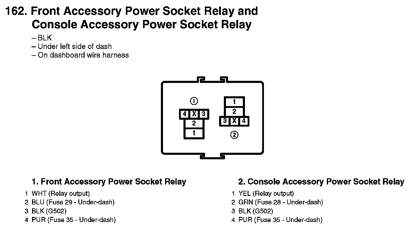 162. Front Accessory Power Socket Relay And Console Accessory Power Socket Relay:
