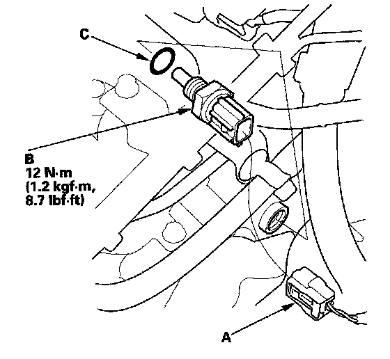 9. Install the parts in the reverse order of removal with a new O-ring (C), then refill the radiator with engine coolant.
