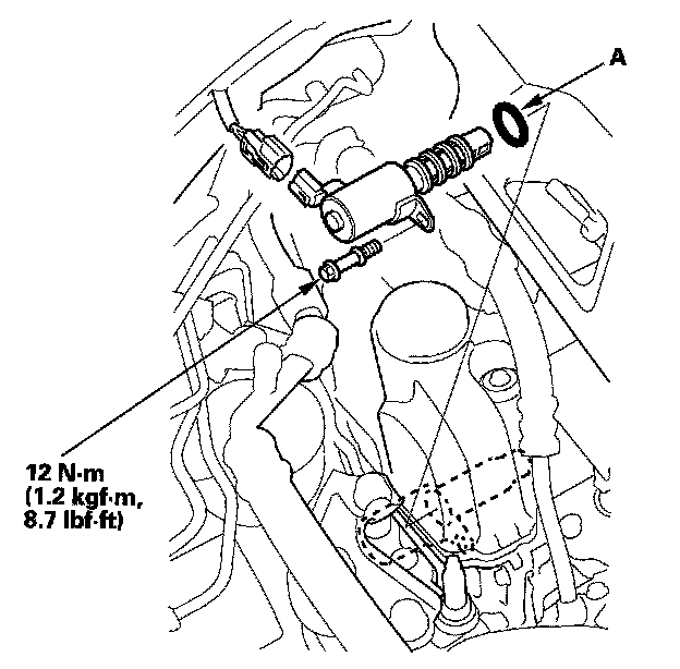 VTC Oil Control Solenoid Valve Removal/Test/Installation1. Disconnect the VTC oil control solenoid valve 2P connector (A).