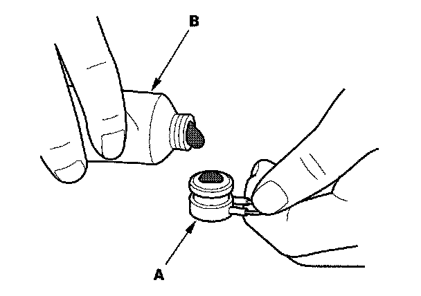 2. Replace the thermal protector (A) with a new one, and apply silicone sealant (B) to the bottom of the thermal protector.